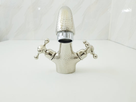 Hammered silver faucet ; Bathroom silver faucet ; two handles faucet