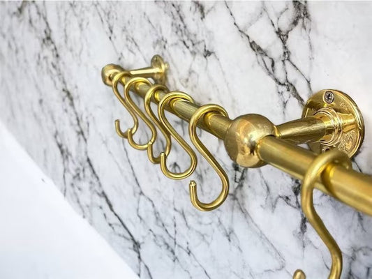 Unlacquered solid brass hanging pot and pan , brass hanging hook , kitchen hanging Rail , hanging hooks for kitchen , kitchen rack organizer