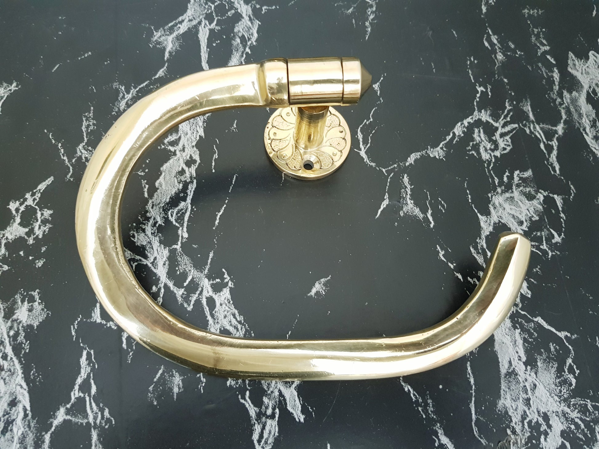 Handcrafted of unlacquered brass this Round Towel Holder will have a living finish and a nice warm patina.