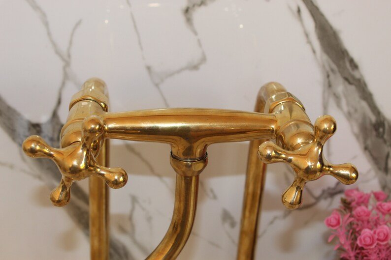Robinet en laiton massif non verni, fabriqué artisanalement à Marrakech par des artisans passionnés, pour un style vintage authentique.