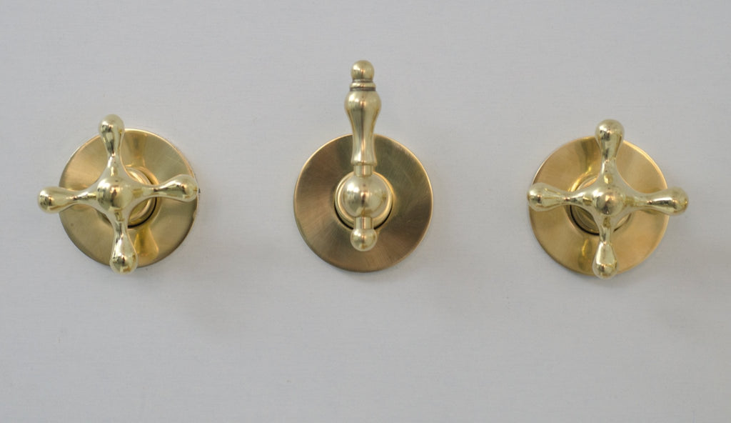 Elevate your shower experience with this stunning unlacquered brass shower system. With over 30 years of experience in manufacturing brass products, our shower system is sure to impress. This system features a dome round shower head, a shower head combo, and 3 handles, all wall-mounted for a sleek and modern look. Indulge in the luxury of unlacquered brass, known for its durability and patina that develops over time, adding character and uniqueness to your bathroom. Upgrade your shower today with this high-quality, long-lasting brass shower system