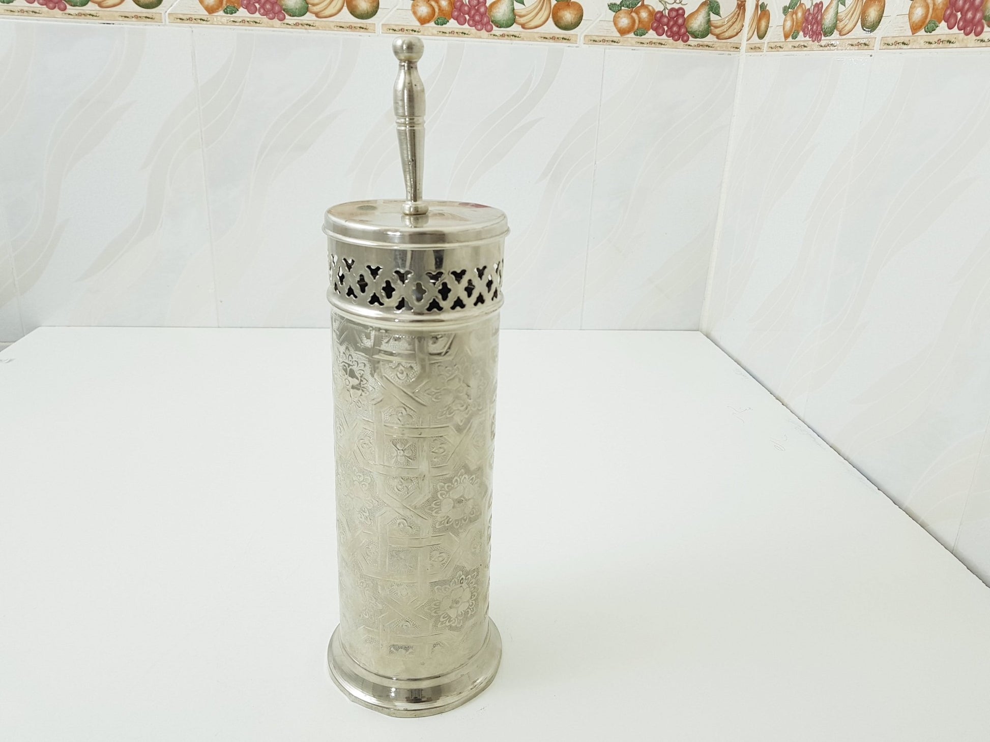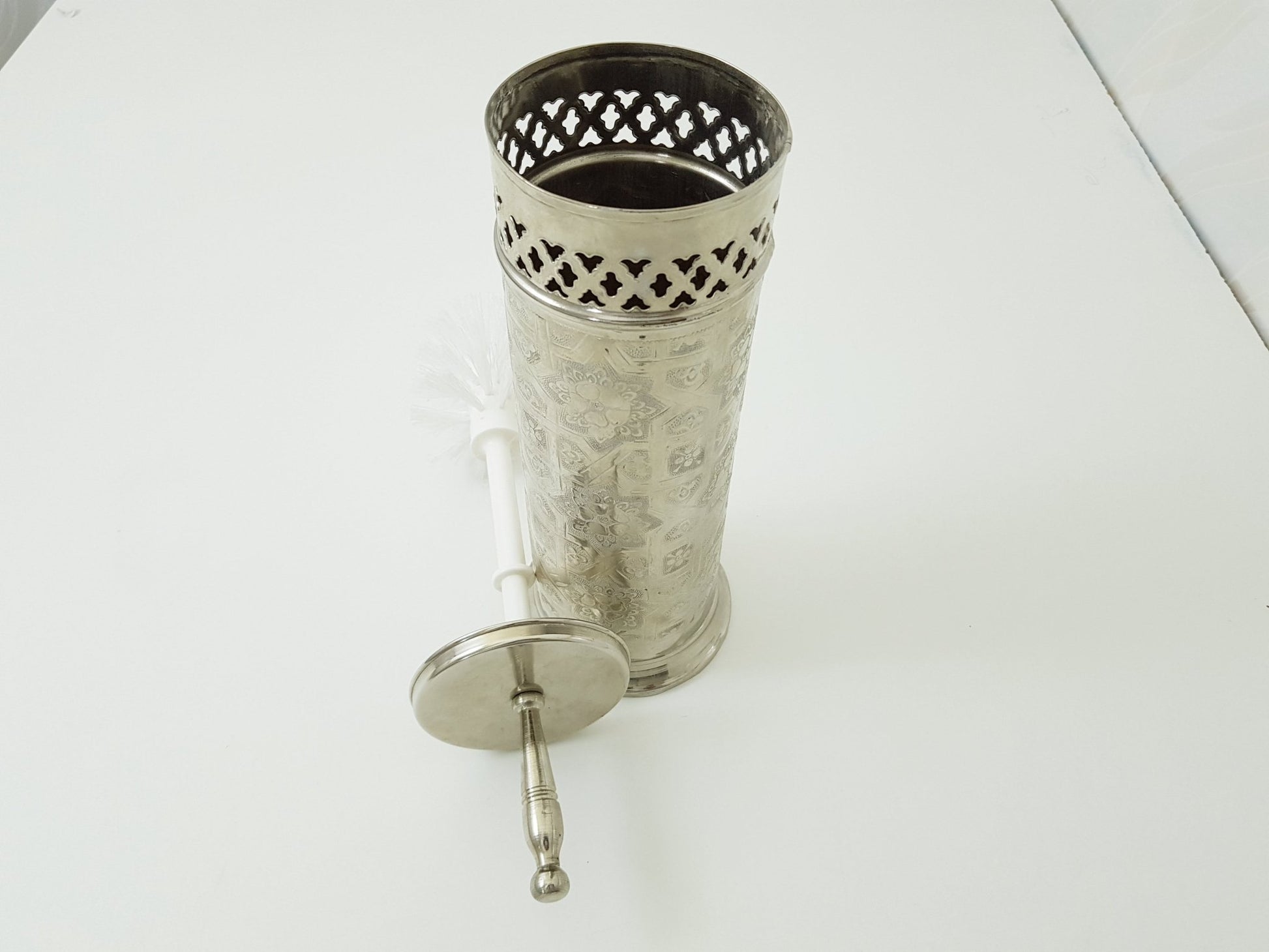 Silver toilet brush holder ; Engraved solid silver ; handmade toilet brush holder ;floor mount toilet brush holder: