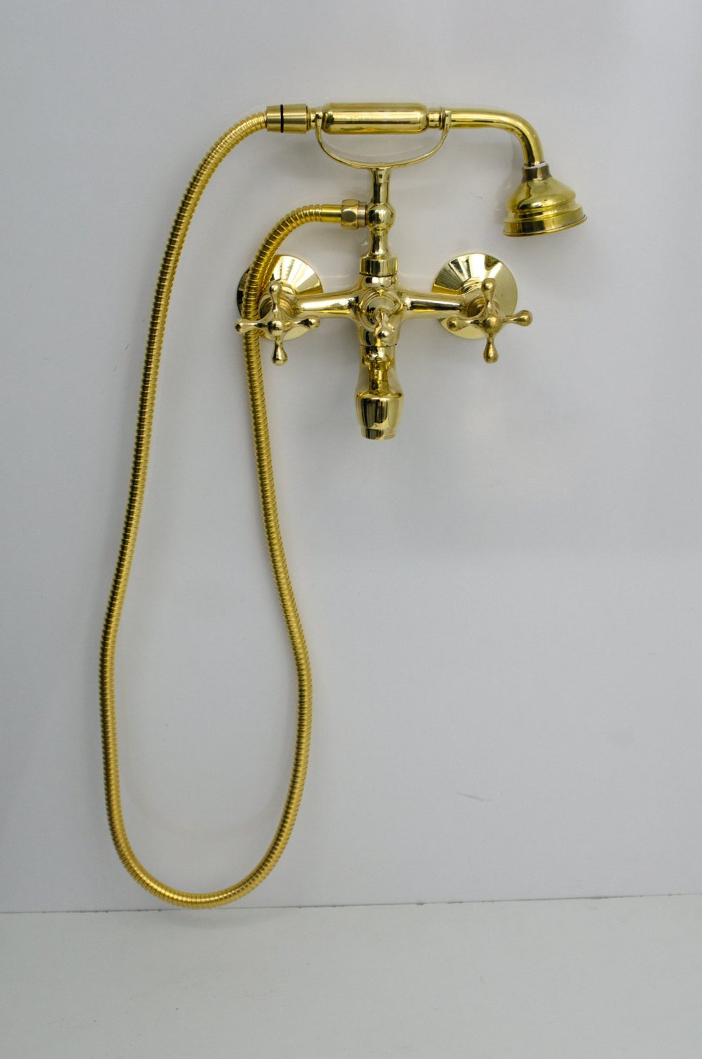 -This Wall Mount Telephone Tub Filler With Handheld Shower is available in other finishes like [ Antique Brass, Brushed Nickel, Chrome Polished, Gold Polished ]