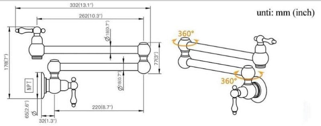 Handcrafted unlacquered solid brass pot filler for an aging vintage look. Made in Marrakech by passionate craftsmen and excellent workmanship.